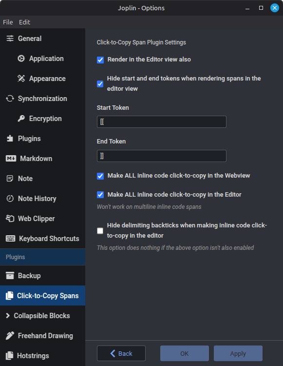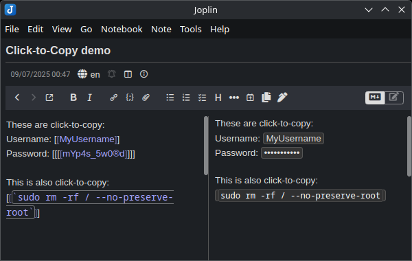 This Joplin plugin allows you to create inline click-to-copy text spans.